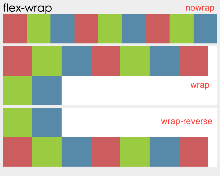 規定如果容器在主軸方向無法容下所有項目,主軸上的項目如何換行(flex-direction為column和column-reverse時,就是“換列”了):